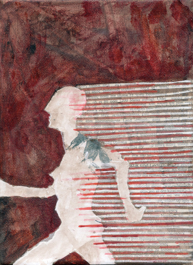 Flucht, Acryl, Collage auf Leinwand, 22 x 16 cm